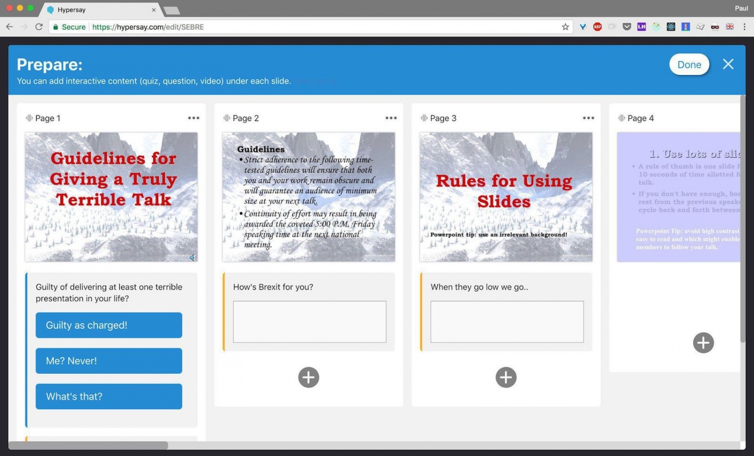 - Hypersay Slides - Next generation interactive presentation tool. > https://hypersay.com/slides