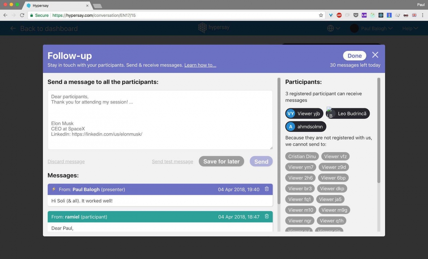 - Hypersay Events - End-to-end platform for hosting digital events. > https://hypersay.com/events