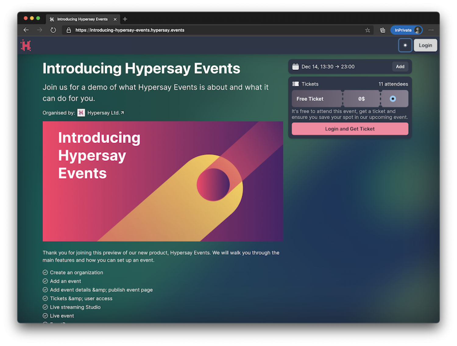 Hypersay Events is a second-generation digital events platform, offering unique tools (such as FrontRow) to create emotional connections.